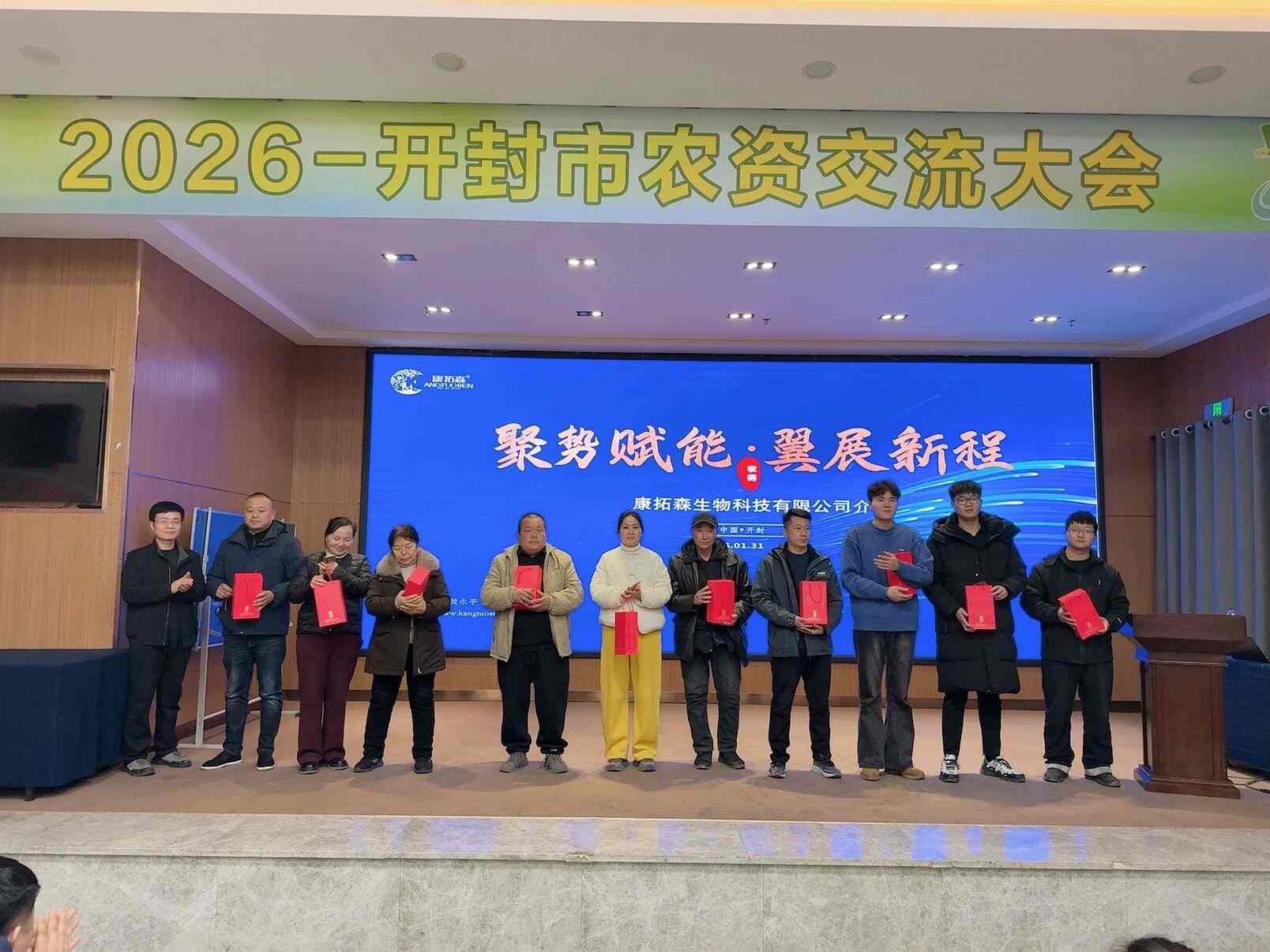 2026年1月31日,在开封市农业局精心组织举办的“开封市农资技术交流大会”上,康拓森生物科技有限公司凭借卓越的产品品质、领先的技术实力与扎实的田间应用效果,在众多企业中脱颖而出,成为经开封市农业局严格把关、层层选拔后,获荐参与本次大会产品技术赋能环节的企业。这不仅是一份荣誉,更是开封市农业主管部门与广大种植户对我们长期坚持科技创新、服务农业的高度认可与信赖。